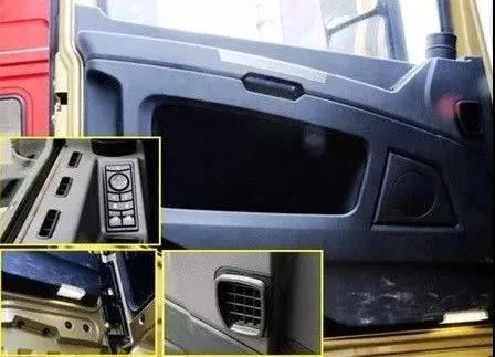 中控下边布置各功能按键,轮间差速器、电动气动喇叭、驾驶室电动翻转等功能按键触手可及,操作更加简单方便。